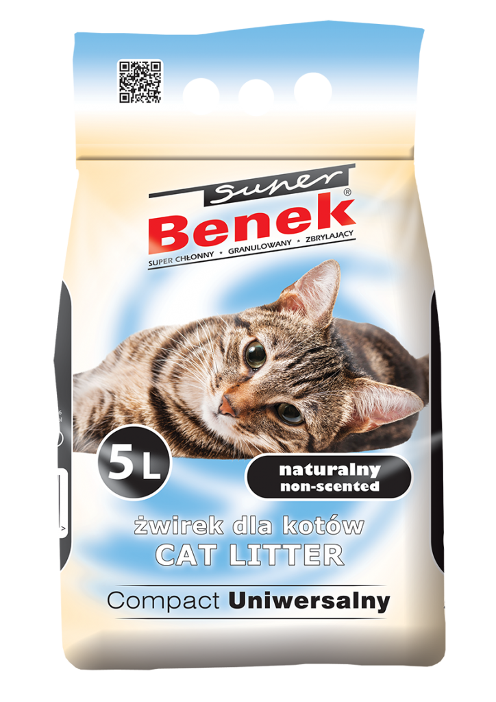 benek-uniwersalny-compactŻwirek higieniczny dla zwierząt domowych wytwarzany z glinki bentonitowej. Cechuje się zawartością regularnych ziaren występujących we frakcji 0,5 – 2,0mm. Bardzo chłonny, bezpyłowy granulat zbryla na płaskie elipsowe granulki. Dzięki temu jego zawartość w kuwecie może być nawet poniżej 4 cm.